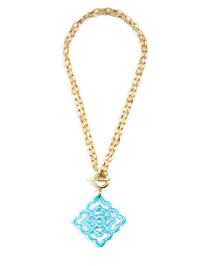 Circular Wave Resin Pendant Double Link Chain Necklace