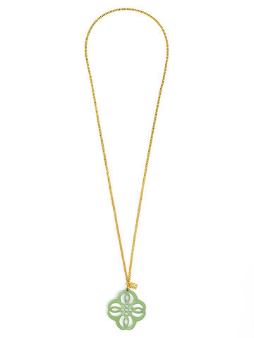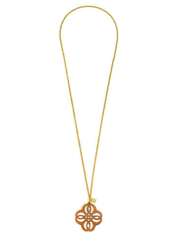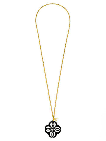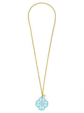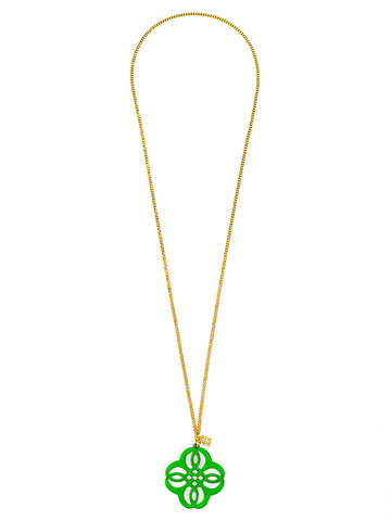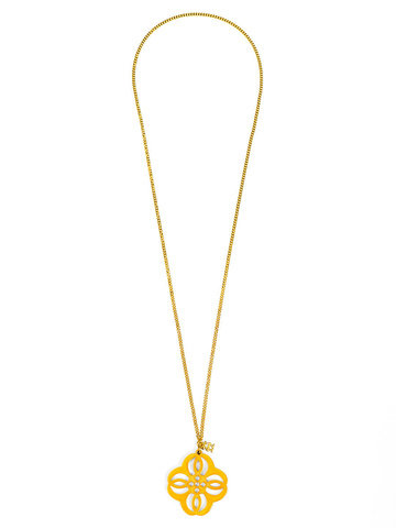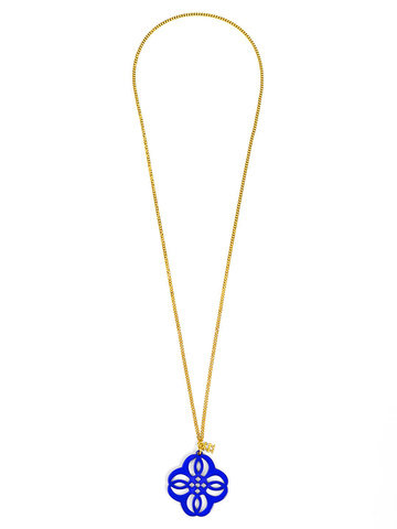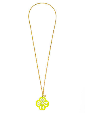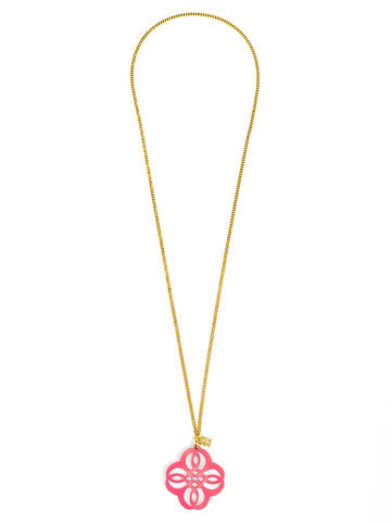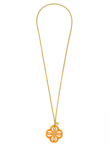 Adjustabe long necklace featuring a vibrant resin cutout pendant in a mandala-inspired shape.