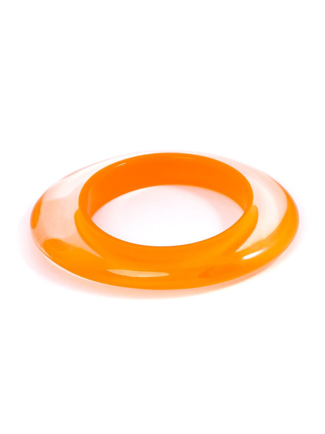 Oval You Bracelet Clear in the middle but lined with color, this resin bangle is airy and stylish. - Height: 1" - Resin Oval Bangle - Nickel and Lead Compliant (Hypoallergenic)
