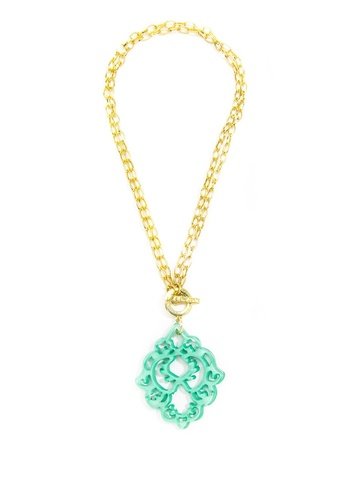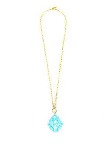 Eyes up here! This pendant is sure to bring a punch of color and vivacity to any outfit.