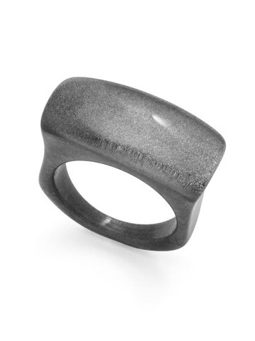 Square pebble shaped ring made from glistening resin and lucite.
