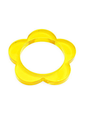 Bangle bracelet made from premium grade lucite in a flower shape.