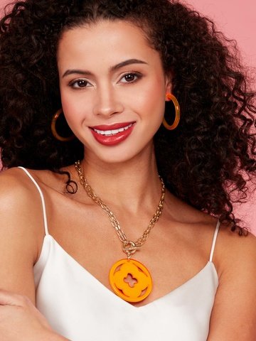 Drop earring embellished with a marbled pendant.