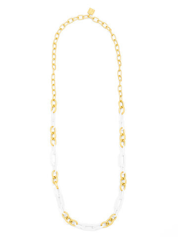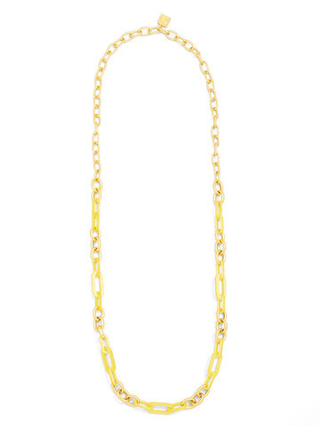 Long necklace made with alternating colorful resin and 18K gold-plated links.