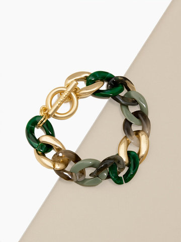 Curb chain bracelet composed of resin-based links and finished with a toggle closure.
