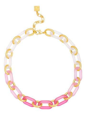 Collar necklace featuring alternating colorful resin and solid metal oval links.