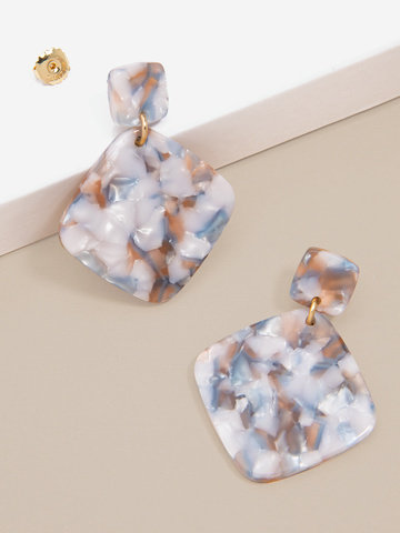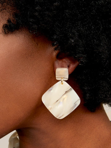 Resin drop earring featuring a unique quatrefoil cutout design.