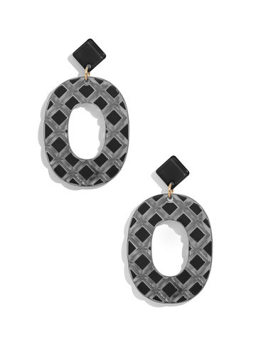 Resin drop earring in a quilted pattern.