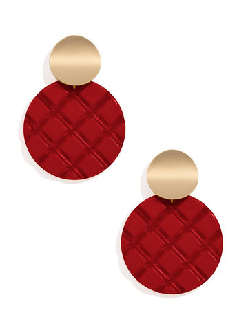 Resin drop earring in a quilted pattern with 18K gold-plated accent.