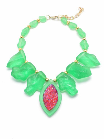 Hit the ground running with this organic rock trendy necklace with different size stones and a shining middle stone.