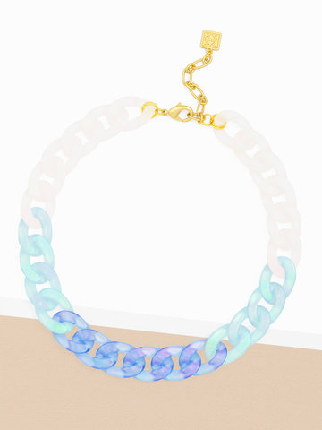 Curb chain collar necklace made from resin links in a mixed colorway.