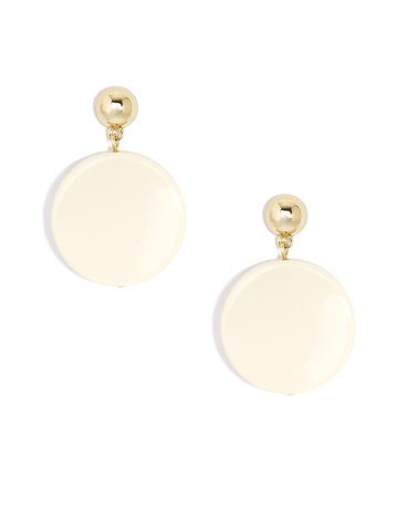 Premium-grade resin, flat circle drop earring with gold-tone metal post.