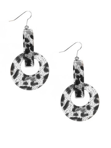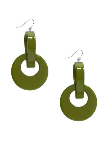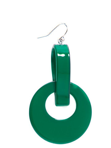 Linked Mod-style resin drop earring shaped as round door-knockers.