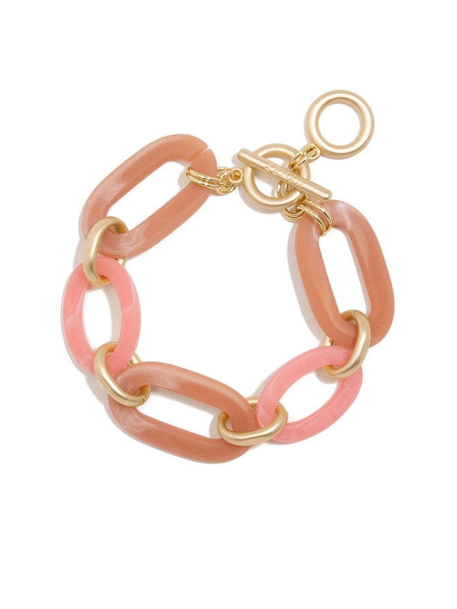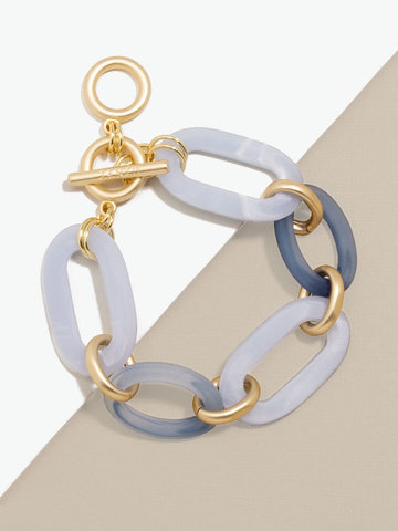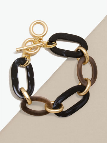 Bracelet designed with cloudy two-tone resin links and metal-plated oval links and completed with a toggle closure.