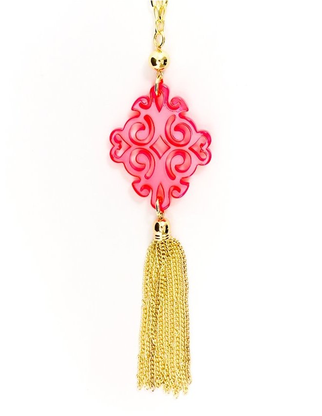 Quatrefoil Cutout Resin Pendant Adjustable Long Necklace